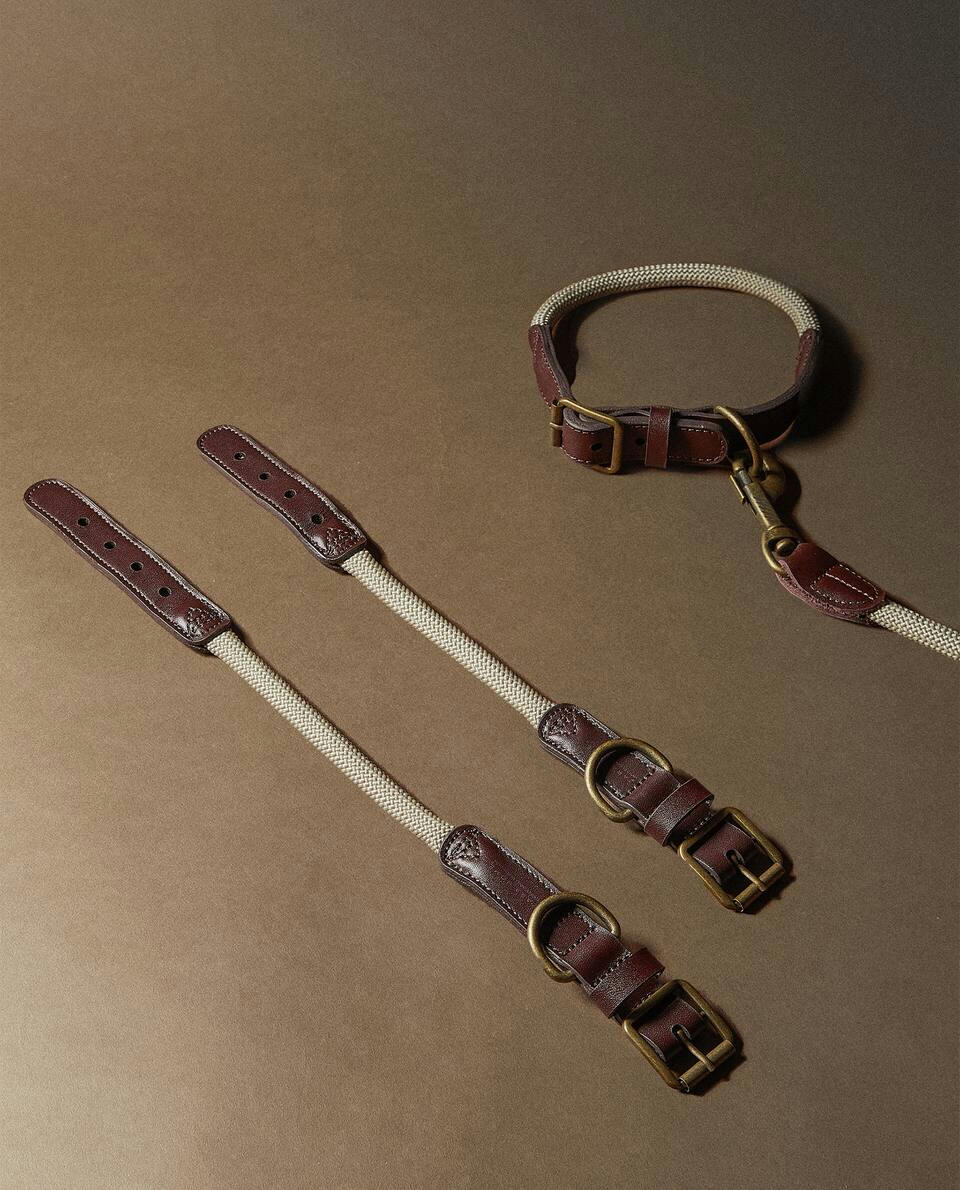 LEATHER AND ROPE PET COLLAR