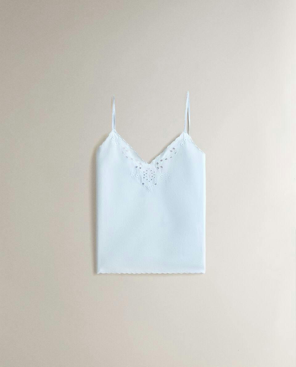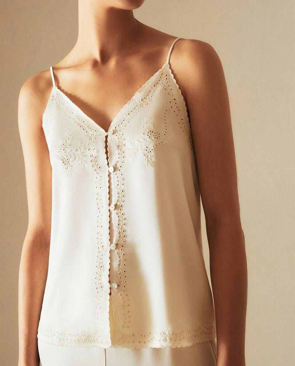 EMBROIDERED SATEEN TOP