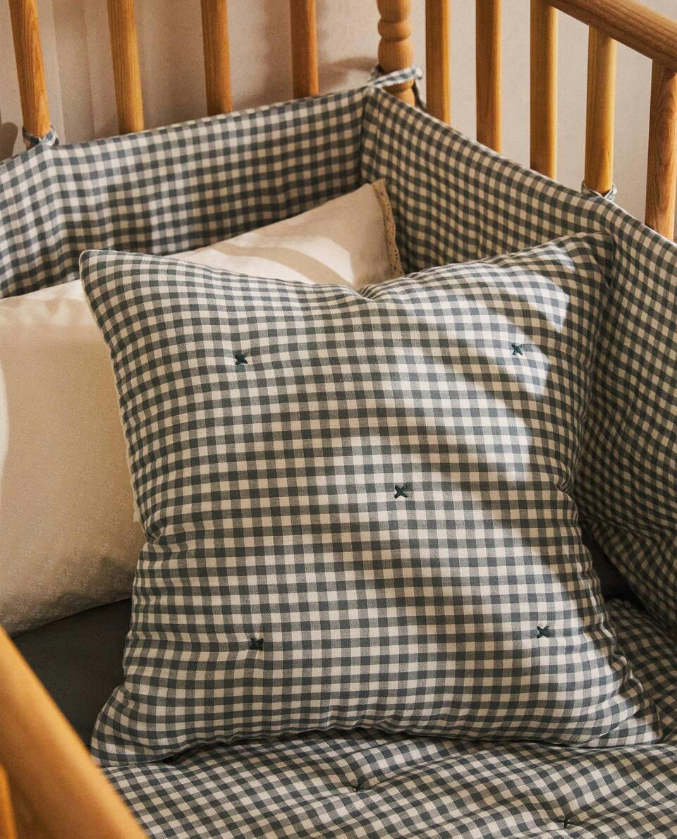 CHILDREN’S CHECK MUSLIN CUSHION COVER