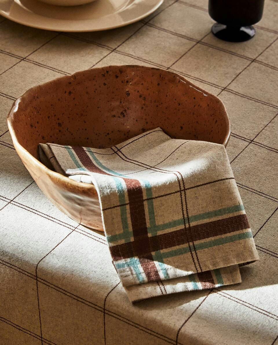 CHECK COTTON LINEN TABLECLOTH